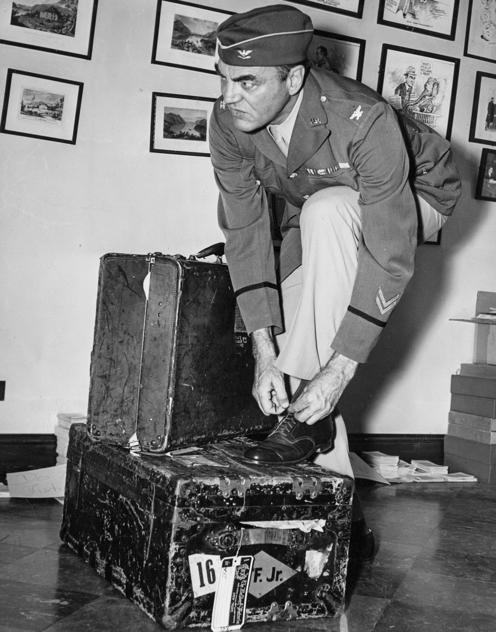 Representative Hamilton Fish heads to army reserve training in 1942.
