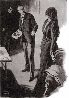When our hansom deposited us at the house of Mrs. Merrilow, we found that plump lady blocking up the open door of her humble but retired abode. It was very clear that her chief preoccupation was lest she should lose a valuable lodger, and she implored us, before showing us up, to say and do nothing which could lead to so undesirable an end. Then, having reassured her, we followed her up the straight, badly carpeted staircase and were shown into the room of the mysterious lodger.